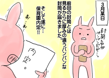 はちきれんばかりの封筒が届き自宅から20分ほどの保育園に内定をもらえました。