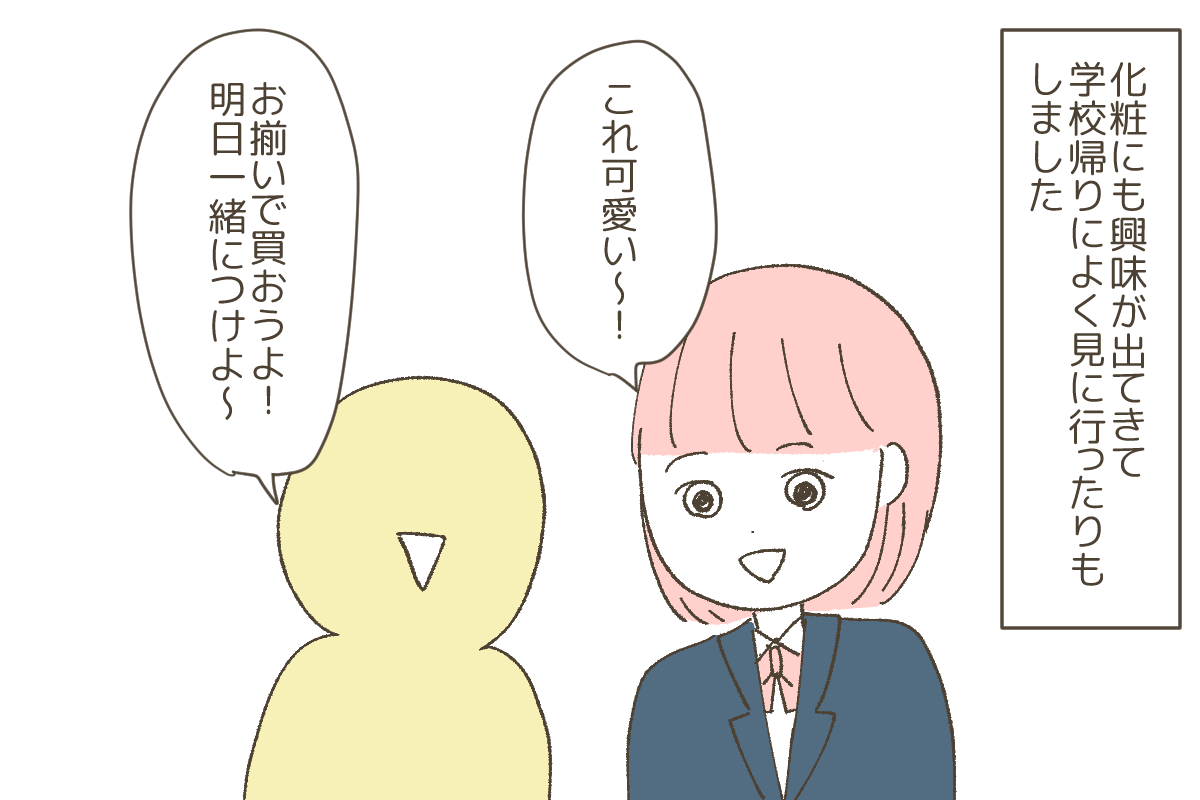 この日はお揃いの化粧品を買い、明日一緒につけてこようと言う約束をしました。