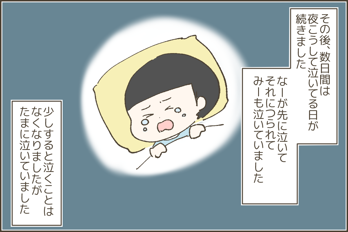 どちらかというとなーのほうが繊細なので、たまに泣くときもなーが泣いていました。