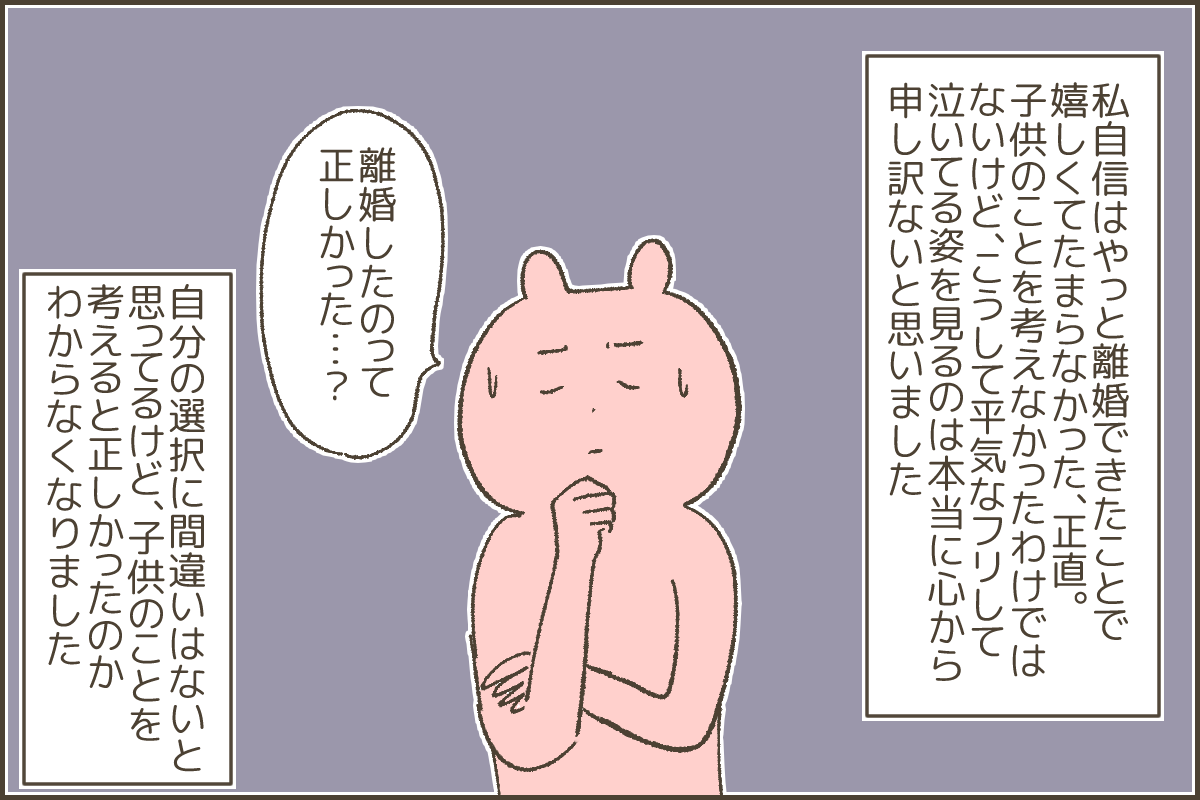 泣いてる姿を見るのは辛かったし申し訳なくて、離婚したのは正しかったのかわからなくなりました。